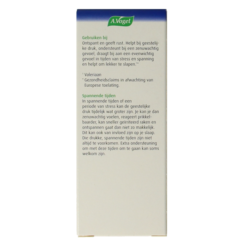A.Vogel Rustgevende1* druppels met Valeriaan is een natuurlijke rustgever* op basis van het plantaardige ingrediënt valeriaan. Valeriaan helpt bij geestelijke druk en inspanning, ondersteunt bij een zenuwachtig gevoel en draagt bij aan een evenwichtig gevoel in tijden van stress en spanning. Het bevordert de slaapbereidheid en helpt om lekker te slapen1*.