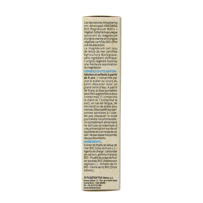 De magnesium komt uit zeesla van gecertificeerde biologische landbouw, zonder chemische ingrediënten.