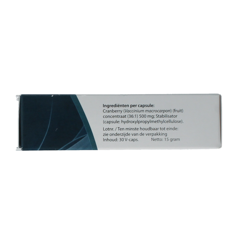 Cranberryconcentraat, stabilisator (capsule: hydroxypropylmethylcellulose), Emulgator: guargom, zonnebloem lecithine)