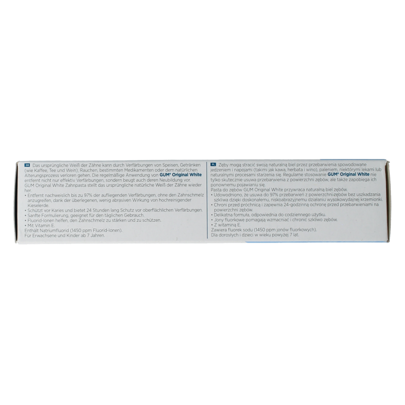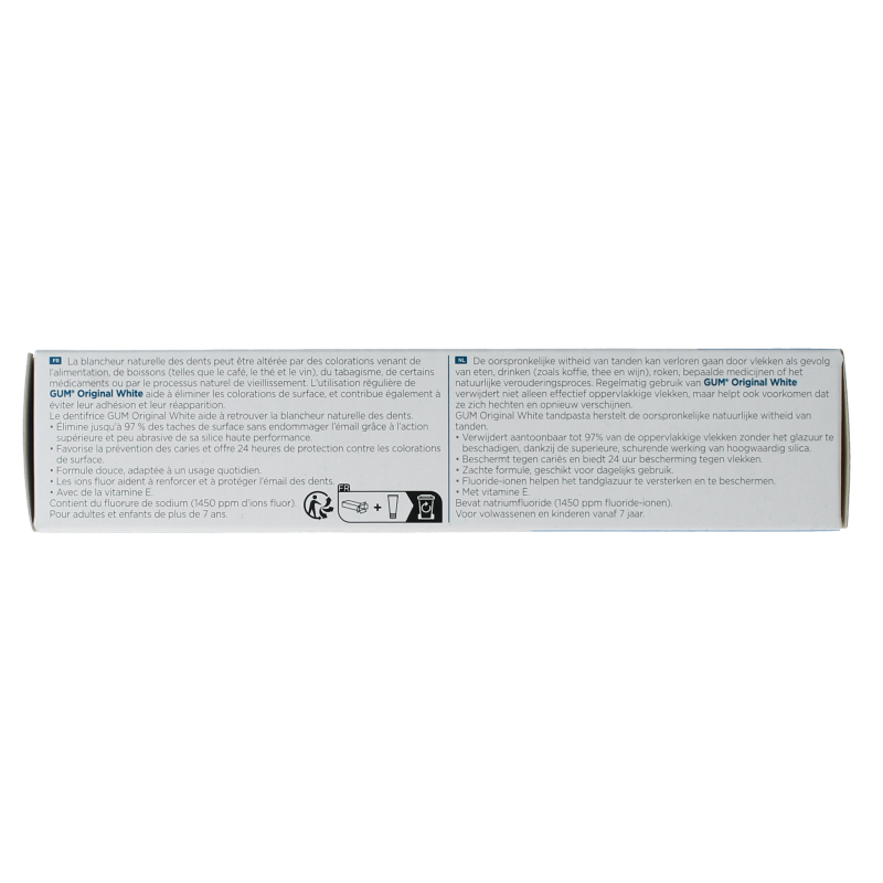 GUM Original White tandpasta herstelt de oorspronkelijke natuurlijke witheid van tanden.