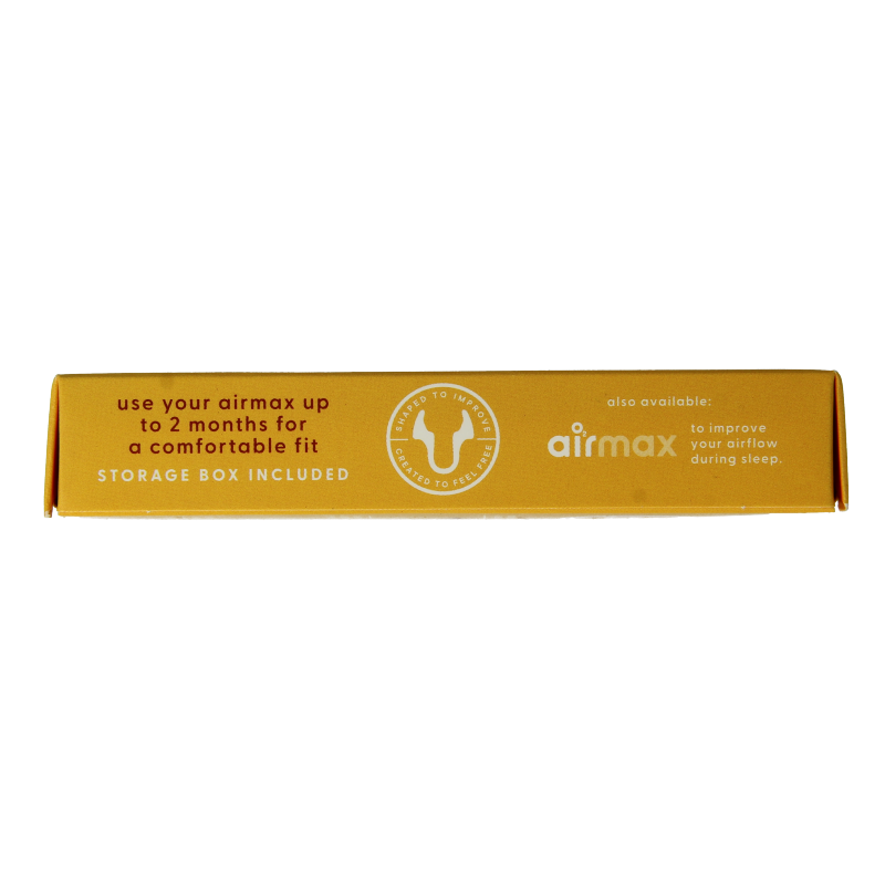 Door het in de neus plaatsen van de Airmax wordt het smalste gedeelte van de neusingang verwijd. De duwkracht van de Airmax werkt zeer effectief en vergroot de instroomruimte voor lucht. Dat zorgt voor een betere luchtdoorstroming terwijl het dragen van de Airmax uiterst comfortabel is.