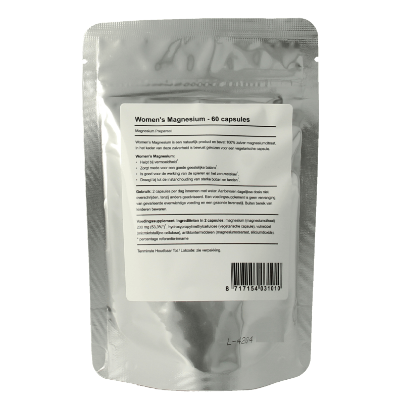 Magnesiumcitraat, hulpstoffen: hydroxypropylmethylcellulose (vegetarische capsule), vulmiddel (microkristallijne cellulose), antiklontermiddelen (silicium dioxide, magnesiumstearaat)