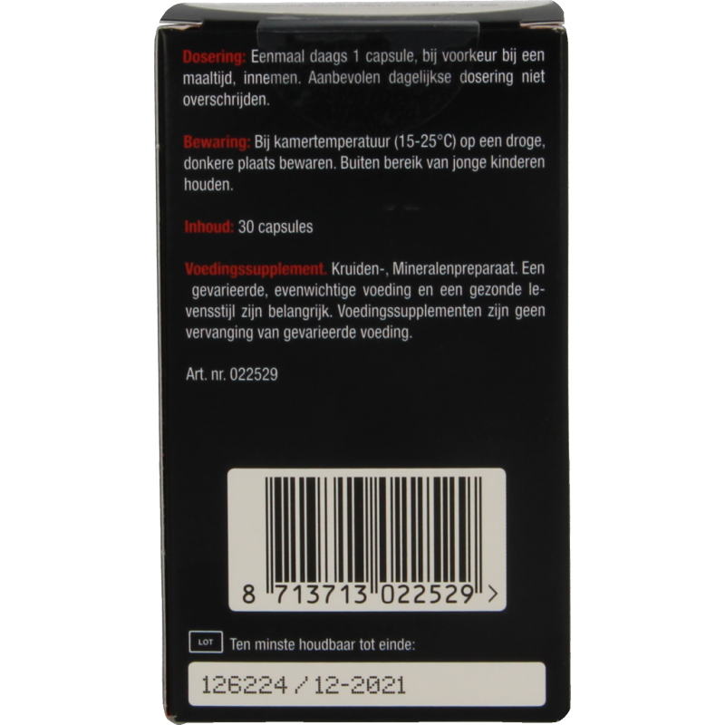 Een gevarieerde, evenwichtige voeding en een gezonde levensstijl zijn belangrijk. Een voedingssupplement is geen vervanging van een gevarieerde voeding.