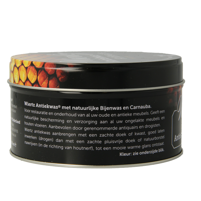 Wiertz Antikwas honing loog. Voor restauratie en onderhoud van al uw oude en antieke meubels. Geeft een natuurlijke bescherming en verzorging aan al uw ongelakte meubels en houten vloeren. Uitermate geschikt voor het bijkleuren van uw hout. Aanbevolen door gerenommerde antiquairs.